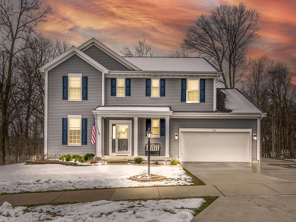 This is your opportunity to live in sought in Timber View Estates! Enjoy community pool access with this stunning home offering a Half Bath, Flex Room, and Formal Dining Room upon entry. The spacious Kitchen boasts granite countertops, stainless appliances, pantry and a massive island. The large Dinette offers sweeping views of the wooded lot! Cozy up by the gas fireplace in the Great Room featuring laminate wood floors. Retreat upstairs to three Bedrooms, Laundry Room, full Bath, and a luxurious Primary Suite with tiled shower, deep bath tub and walk-in closet. The lower level boasts a Wet Bar, additional Bedroom, Full Bath, and a large Rec Room. Outside, enjoy the serene and private wooded backyard, patio, and deck. Your dream home awaits--act fast!