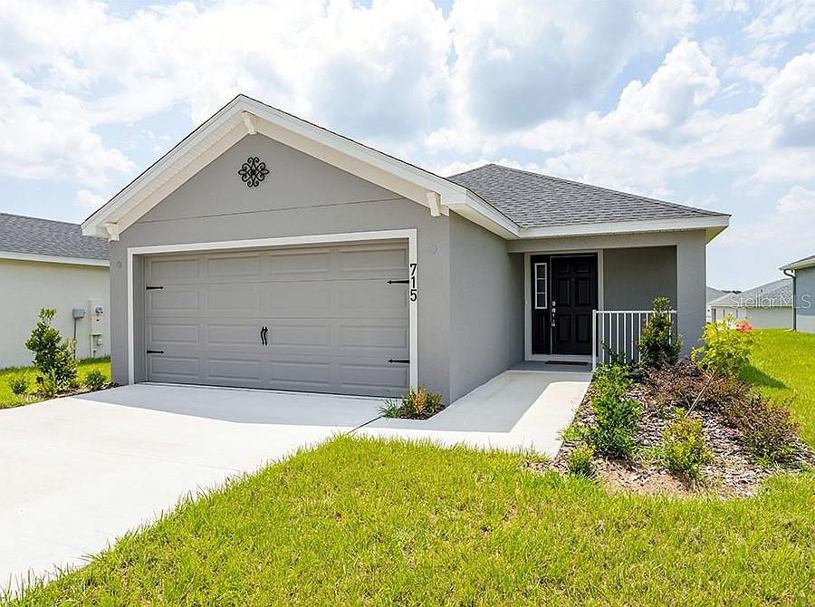 New construction home with 1,479 square feet on one-story including 3 bedrooms, 2 baths, and an open living area. Enjoy an open kitchen with Samsung stainless steel appliances, pantry, and a spacious island, fully open to the dining café and gathering room. The living area, laundry room, and baths include luxury wood vinyl plank flooring, with stain-resistant carpet in the bedrooms. Your owner's suite is complete with a walk-in wardrobe and a private en-suite bath with dual vanities, a tiled shower, and a closeted toilet. Plus, enjoy a covered lanai, 2-car garage, custom-fit window blinds, architectural shingles, energy-efficient insulation and windows, and a full builder warranty. Please note, virtual tour/photos showcases the home layout; colors and design options in actual home for sale may differ. Furnishings and decor do not convey."