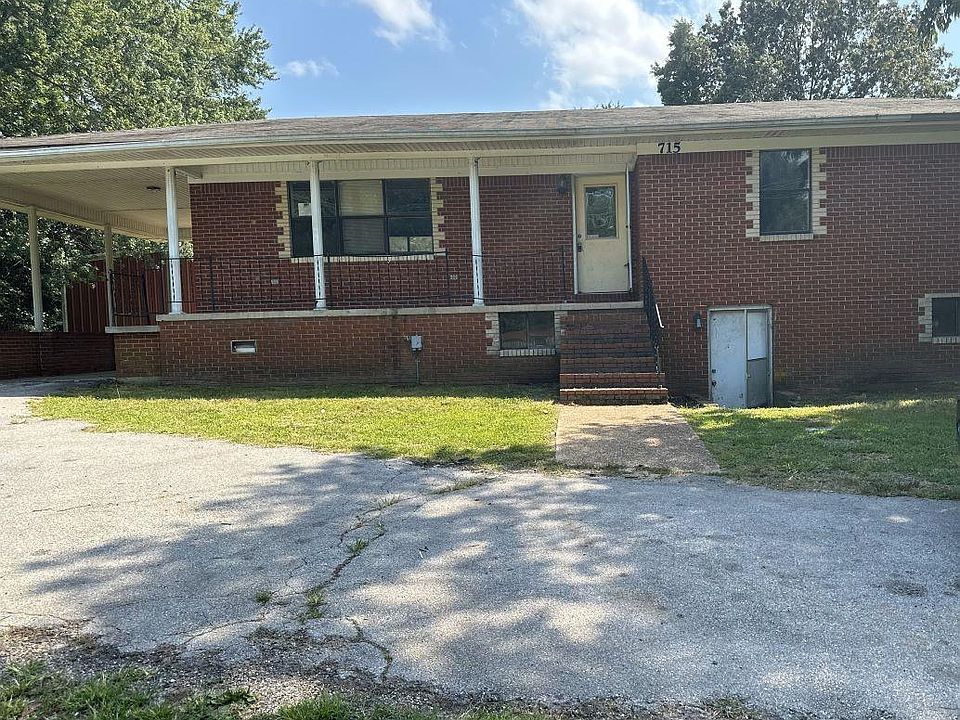 Red brick home with circle drive has carport and large back deck. Walk out basement has plenty of space to expand. Also has a large shop with garage door. Don't miss the opportunity to check out this space and all that it has to offer. Please see agent remarks for submitting offer.