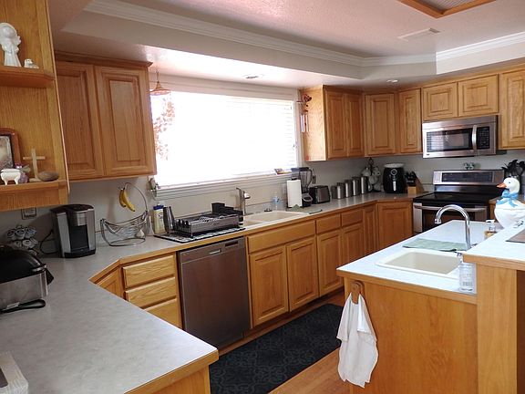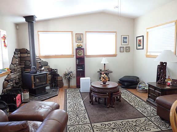 Attractive single-level home on 5 fenced/x-fenced acres. The 3 bedroom, 2 bath home features family room w/wood stove & chapel ceiling, living room w/pellet stove & French doors to deck, kitchen w/skylite, island/breakfast bar w/prep sink, LG appliances, den, main bath has both tub & separate shower, some hardwood floors, ceiling fans, tile, crown molding, SOS security/fire alarm system, 2-car attached garage. Large multi-level deck w/beautiful views, above-ground pool & 220 for hot tub. Circle drive w/auto security gate. Large shop w/2nd level storage, currently configured for woodworking, wood stove & swamp cooler. Chicken coop + several wood storage areas. Beautiful 3-stall barn also has parking for 2 cars, lots of storage, half bath, access to pasture areas. Covered hay storage, RV parking w/ 30 & 50 amp power plus 110, water & sewer. Just too much to list. Please call for your personal tour, & welcome home!