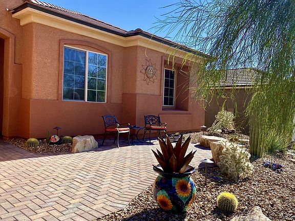 Fully upgraded and ready for IMMEDIATE move-in! This exquisite home embraces nearly $200,000 in luxurious upgrades inside and out. This .21 acre home site is awesome & could accomodate a pool. The landscaping is distinctive as the outdoor spaces were thoughtfully designed and covered with indigenous plants, colorful cactus and tropical plantings. The generous, fenced home site allows the three decorative paver patios to expose the remarkable mountain and mesa views. A Crystalline Entry Door invites you in as the large picture windows immediately showcase the remarkable outdoors. The great room is open w/ a built in AV wall & fireplace. Anchoring the kitchen is a gorgeous island wrapped with a "single slab" chiseled edge custom piece of granite. Painted Marble cabinetry line the kitchen. Surrounded by windows, the dining room is perfect for small gatherings or sophisticated meals. The owner's suite has a french door to patio and hosts a costly bay window. Diagonal lay custom tile, upgraded carpet, Tray ceilings, warm paint tones & costly Transitional Illusion Window Treatments finish the spaces. The insulated garage is fantastic with a much needed AC unit & 4' extension.