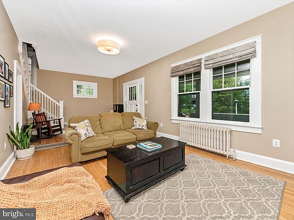 Nestled in the desirable and historic Hunting Ridge neighborhood of Baltimore, this charming 1930s bungalow offers a harmonious blend of classic elegance and modern updates. Ideally situated adjacent to the stunning Gwynns Falls Park, one of the largest urban forests in the nation, this delightful home offers unparalleled access to nature,recreation, city convenience, and suburban amenities. This residence offers a wonderful connection between indoor and outdoor living. Imagine relaxing on the huge new front porch or unwinding in the cozy screened-in back porch. The beautifully updated and expanded kitchen, featuring stunning quartz countertops, abundant 42" hardwood cabinets, a convenient center island, and a charming breakfast nook with included banquette, provides direct access to the inviting backyard and patio – perfect for seamless indoor-outdoor entertaining. Elegant classic French doors open from the living room to the formal dining room, enhancing the flow for gatherings. The huge living room, with its warm wood-burning fireplace and elegant built-ins, creates a welcoming atmosphere. For peace of mind, the home features a brand-new (2024) architectural grade shingle roof and brand-new gutters (2024) Inside, the timeless quality of 1930s craftsmanship is evident in the 9-foot ceilings and gleaming hardwood floors. Upstairs, you'll discover four generously sized bedrooms and refreshed bathroom flooring. A convenient powder room is located on the main floor, and a unique private back staircase leads directly from the bedroom level to the kitchen, adding a touch of character. Enjoy the luxury of newly-laid carpeting (2025) on the staircase, upstairs hallway, and 3 of the bedrooms. The partially finished full basement provides ample storage and includes a large utility room, a separate workshop – ideal for hobbies – and a convenient water closet. Outside, the fenced rear yard with a brick patio extends your living space outdoors. Beyond the tranquility of home and the beauty of adjacent Gwynns Falls Park, you'll appreciate the unparalleled convenience of this location. Enjoy easy access to the vibrant amenities of Catonsville, Ellicott City, Columbia, and Downtown Baltimore, all just minutes away. Commuters will appreciate the proximity to BWI Thurgood Marshall Airport, MARC train, and Amtrak, as well as major roadways including the Beltway, I-95, and I-70. A significant bonus: while nestled in historic Hunting Ridge, this exceptional home is not subject to CHAPS oversight, offering you greater flexibility. Experience the best of both worlds – the enduring charm of a bygone era, thoughtful modern updates, a fantastic connection to the outdoors, and proximity to a national urban forest in this exceptional Baltimore home!