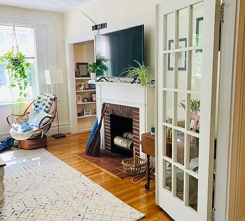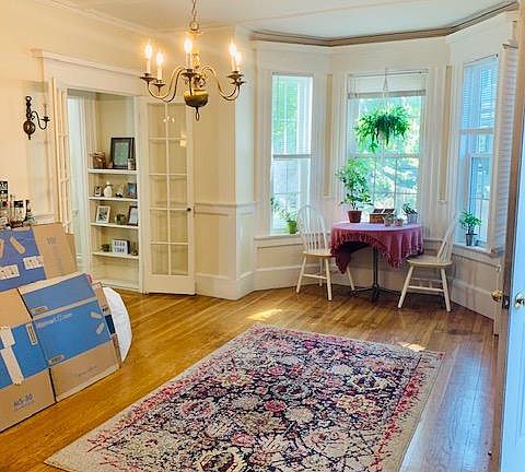 Spacious and bright first floor in a two family - 2 Bedrooms, 1 Bath. Separate dinning room w/gleaming wood floors. Ceiling fans, Gas cooking, Big kitchen, Rear decks, Nice yard. 1 off street parking included in the rent. Awesome Sunporch & Great outdoor space for Barbecuing. Close to recreation, restaurants, night life, shops & St. Elizabeth's Medical Ctr. catch the express bus into Boston or head on over to the new commuter rail stop down the road. Pet friendly. August 1st move in. Tenant to pay brokers fee. Need first and last month rent. Security deposit not collected.