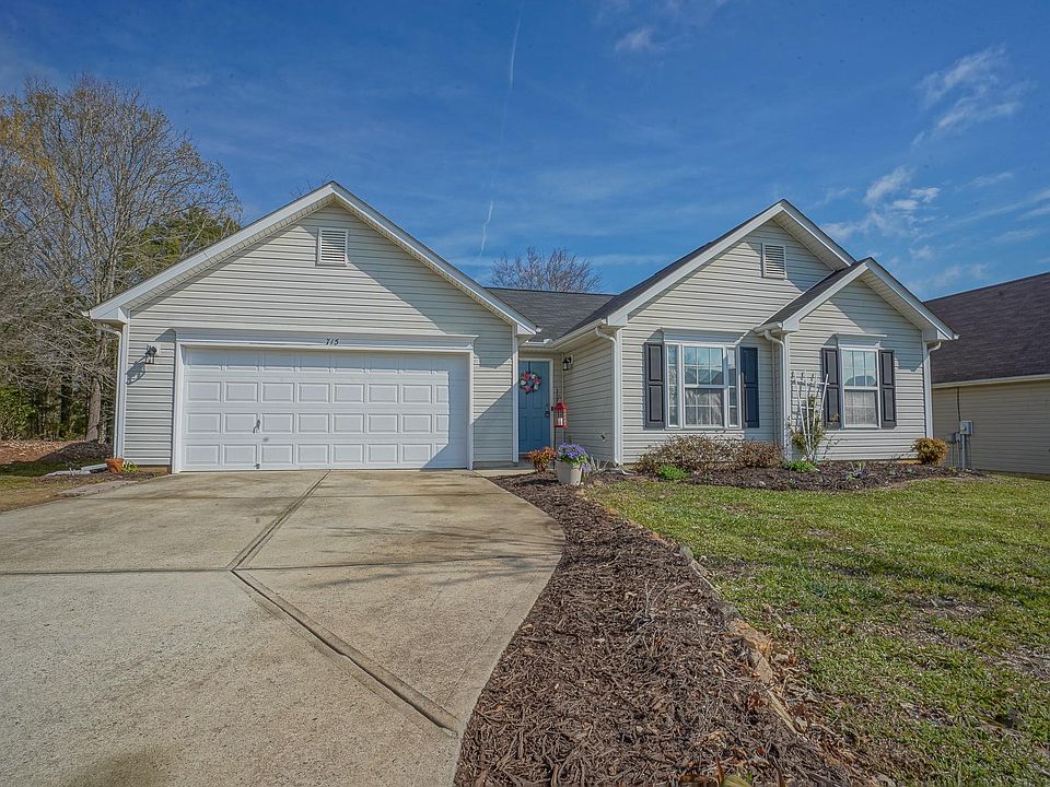 Enjoy 1 level living in this 3 bedroom, 2 bath ranch home with split bedroom floor plan. Plenty of space in the yard to enjoy the outdoors. Wooded lot next door provides space between homes and is maintained by the HOA. Home is just outside the city limits so not city taxes but you still have city water and sewer. New roof in 2018 and HVAC only 3 years old. USDA Eligible!