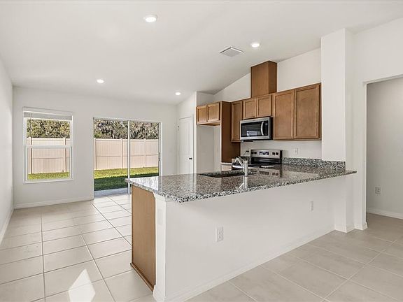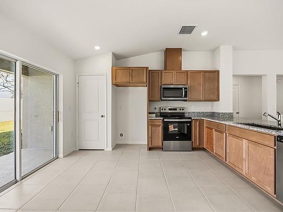 Under contract-accepting backup offers. This thoughtfully designed, single-story home showcases an open floor plan with durable tile flooring throughout main living areas. The spacious great room boasts airy volume ceilings. The modern kitchen is equipped with an island, granite countertops, 36-in. upper cabinets, a Kohler® stainless steel sink, a Moen® faucet and Whirlpool® stainless steel appliances. The primary suite features a roomy walk-in closet and connecting bath that offers a dual-sink vanity, linen closet and walk-in shower with tile surround. The covered back patio provides a cozy space for enjoying the outdoors year-round.