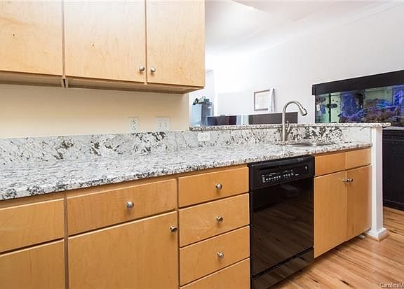 Updated one bedroom condo with hardwood floors in all living area, kitchen and master bedroom. The bath has new tile floors. Huge kitchen with lots of cabinets, gorgeous granite counter tops, breakfast bar and updated appliances. The unit has a stackable washer and dryer. Parking space is #27 in the parking garage. Easy access to I-277, shopping, uptown offices and music factory.