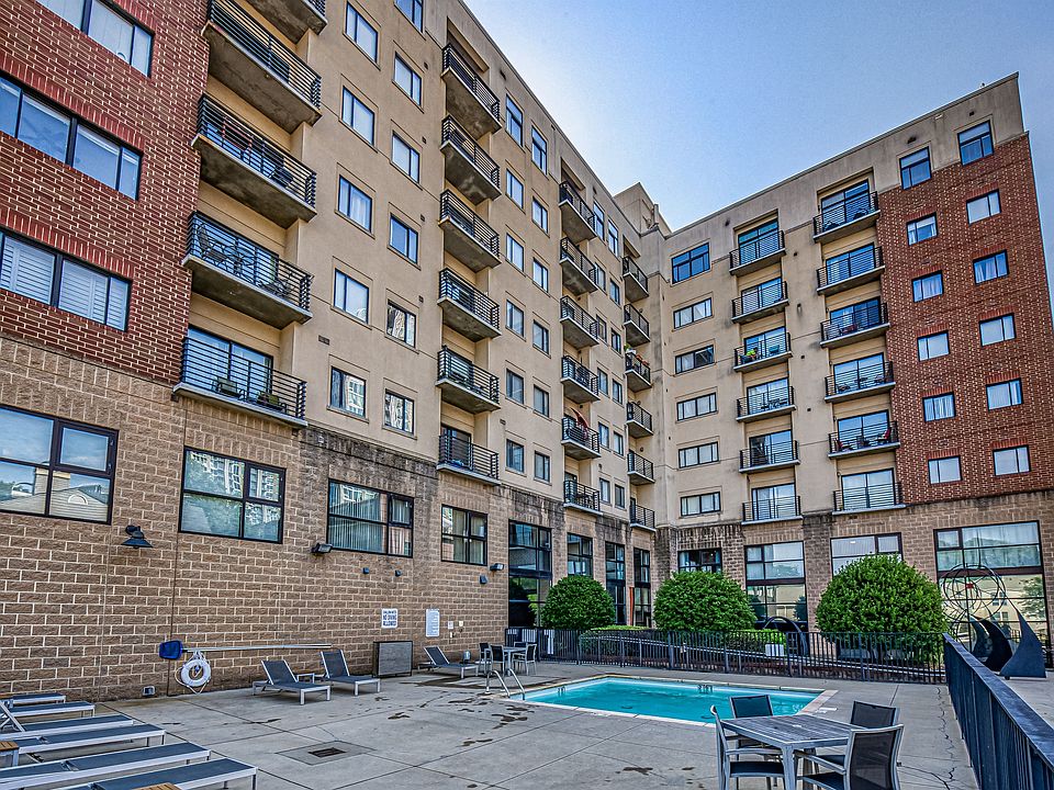 Stunning Top floor condo in uptown, walking distance to everything! Only 1 mile from the Bank of America stadium, easy access to Music Factory, uptown restaurants, McColl Center! Unit boasts 11' ceilings and gets incredible natural light. Fresh paint throughout. Gorgeous view of uptown from balcony and bedroom. Open floorplan with spacious bedroom and bath. HVAC 2014. Located on same floor as the roof top terrace with grill. Great entertaining spot! The complex also features a community pool. Secure building and reserved parking spot.