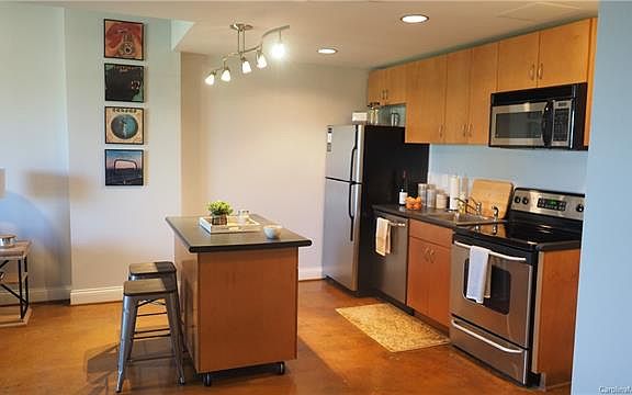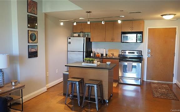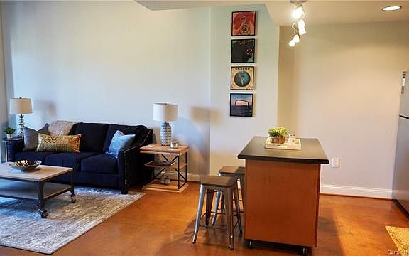 MOVE IN READY CONDO IN UPTOWN CHARLOTTE'S FOURTH WARD! Close to Panther's Stadium, BB&T Ballpark, Epicenter, lots of dining and more! This large one bedroom has a "Joanna Gaines vibe" with high ceilings, stained concrete floors, barn door, and lots of built in architectural shelving. Kitchen features stainless steel appliances and floating island. Refrigerator and Washer/Dryer included. Floor to ceiling windows throughout the unit provide tons of natural light. Rooftop terrace features incredible city views and grill for entertaining! Additional amenities include outdoor swimming pool, gated private parking, and secure building. Enjoy uptown living in this bright and spacious condo. Back on Market due to Buyer Financing falling through.