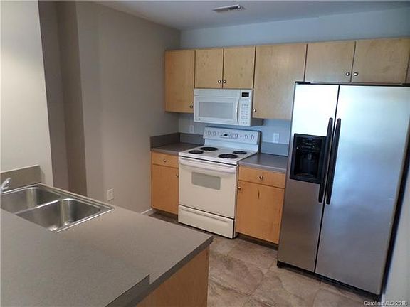 Great Uptown Living- 2 BR/2 BA Uptown Condo on the 4th floor with covered balcony overlooking the pool! Walking distance of all Uptown has to offer- restaurants, Spectrum Arena, Discovery Place, light rail, etc.! New paint, upgraded tile in kitchen & bathrooms, all appliances (including stackable washer & dryer), access to pool & rooftop terrace view & BBQ, reserved parking space, and secured building. Water & HOA fees are included in rent. 2nd bedroom is on the smaller side and can also be used as an office or living space. Easy access to I-277, I-77, & I-85. Available now!