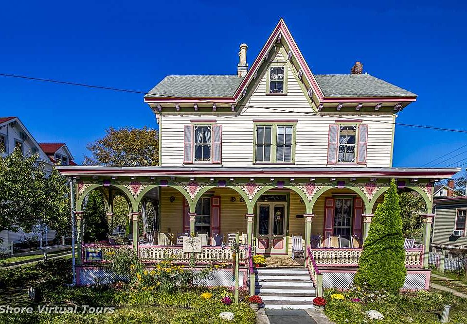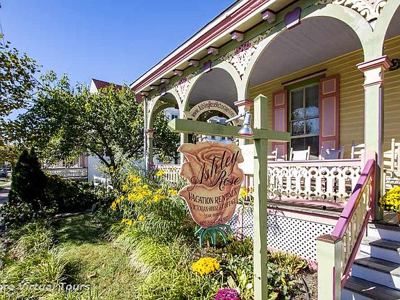 The Ashley Rose Victorian Inn. This historic Inn is located in the center of Cape May and the Historic District. Built in 1872 this Gothic Revival Victorian has been renovated and remodeled. Currently a guest house with rental income.The interior features include updated kitchens and baths keeping with the décor of the home. Modern amenities include multi zoned central air, hot water circulation system, cable and wi-fi. Main house has an open living area and dining room with seating for 18. Main floor suite (Library Suite) with private bath. On the Second floor is the *Astor Suite*, The* Blue Rose*, the *Exselsa* and the *Rose Suite*,all with private baths. The third floor includes the *Camellia and Oceana* room which share a hall bath and seating area. There is large wrap around porch with views down the street to the beach. The *Inlet Cottage* is the renovated carriage house and is located at the rear of the main house. There is a living room with sleeper sofa, eat-in kitchen and bath with washer and dryer. The second floor bedroom has access to a Victorian deck through French doors. The *Honeysuckle Rose* Cottage ( the Treetop) is a living room/bedroom combination with a veranda and is attached to the rear of the main house with private entrance off the side yard.. The kitchen seats 4. The *Wild Rose Cottage Suite* accessible at the rear of the main house provides a bright eat-in kitchen and full bath and living room bedroom combination. The *Tea Rose* is an efficiency with bath and also has a private entrance. This is a sampling of the property photos and the Ashley Rose is a must see to appreciate.
