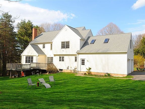 So. Cheshire Gracious Col. set on 2+ acres. Light & bright eat-in kit.w/granite,oversized formal DR, FR w/FP, MBR w/attached bonus rm.--great office/sitting area. 1st flr laundry rm. Walkout basement. Lg. deck. 2 car attached gar. + 2 car detached gar.