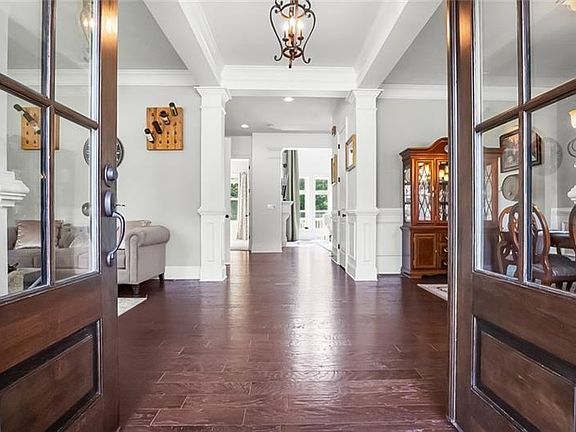 Beautiful custom-built home with a timeless brick and stone exterior in the highly desirable gated community of Manor North. This expansive home is an entertainers’ dream featuring 6 bedrooms, 5 full bathrooms and a 3-car garage. Enter from the stacked stone porch through the 8-foot double front doors past the large formal dining room and living room with fireplace. The floor plan opens to a 2-story family room with beamed ceiling, fireplace, expansive bay of windows and built-in bookcases. There is also a bar area and circling back to the dining room a butler’s pantry. The kitchen has a walk-in pantry, large island with cookbook storage on both ends, pull out cabinet drawers, double ovens and a professional 6 burner gas range. Open to the kitchen is a breakfast area with 3 walls of windows or doors that puts you in mind of a tree house. Outside is a large deck equipped with a gas grill overlooking the lush, private backyard. The main level also includes a guest suite or office and a guest bath and a mudroom leading out to the garage. Upstairs features the private master suite with coffered ceiling, ensuite bathroom with double sinks, soaking tub and walk in shower, a huge walk in closet and secondary closet. In addition, there are 2 bedrooms with a full hall bath, and an oversize 4th bedroom with an ensuite bath. The laundry room is also upstairs convenient to the bedrooms. The terrace level is finished with a media room, rec room, large gym, office or bedroom, full bath with walk in shower, custom bar area with ice maker and wine refrigerator and large storage area. Outside there is a large, covered patio under the deck and breakfast room. The backyard also features a large firepit area. Top ranked schools, shopping and dining only minutes away, this active community features a large clubhouse, Olympic and kiddie pools, 4 pickleball courts, 3 tennis courts and lower Cherokee county taxes.