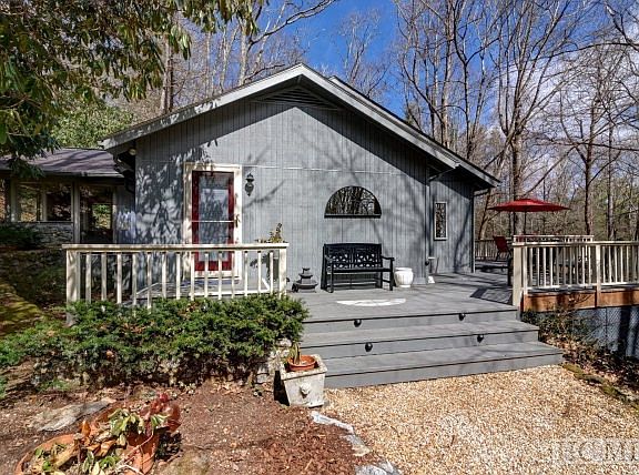 In Town privacy at a tremendous price with a 3 bedroom main house and a 2 bedroom guest apartment above the garage. Clean, open and bright with large deck space to enjoy the cool mountain air and peaceful private wooded setting. Split floor plan. Large living room with vaulted ceilings and lots of windows. Wood floors, granite counter tops, stainless appliances and inviting sun room are just a few of the features of the this attractive in town home. Two bedroom apartment above the garage with full kitchen and living area makes a great place for extra family or used separately as rental. Large dry basement for storage with concrete floor and shelving.