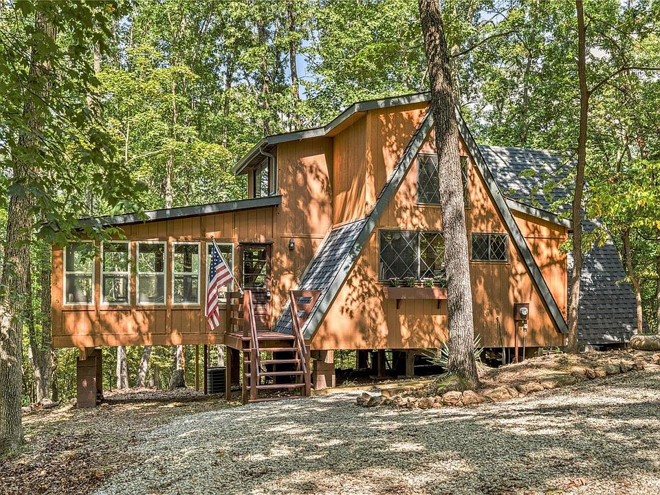 This charming A-frame chalet, located near Lake Aspen & 2 sand beaches sits on a spacious & private 3.6-acre lot directly off paved road from the Maingate. A charming wooded retreat, this chalet will quickly become your new favorite getaway. Turn-key & ready for fun, great entertaining & memories! Gorgeous walls of windows, updated baths, laundry, 2 bedrooms + sleeping loft, brand new furnishings & more. When you aren't cozy inside, enjoy the firepit and brand-new hot tub! Recent upgrades to this chalet include a newer roof, HVAC system & deck; enjoy all 4 seasons from sunrise to sunset. Your getaways include all of the Innsbrook amenities: clubhouse, pool, pickleball, hiking trails & more. This chalet can be used as a rental for additional income if desired. All furniture and appliances included along with 2 kayaks, firepit and hot tub. Let the memory-making begin with family and friends in this Innsbrook charmer!