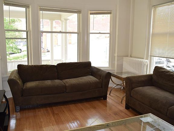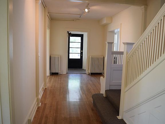 $1,050 per person. Located one minute from the gates to Cornell in Collegetown, at the very top of East Buffalo and Eddy Street, is an 18 bedroom grand Victorian mansion. Tenants pay utilities. As you enter the house there is a large front porch with comfortable outdoor furniture to enjoy the spring, summer and fall in Ithaca. Downstairs in the garden level there is a large laundry room with two washers and dryers, and five bedrooms, one of which has its own half bath. There is also a kitchen on this floor with oak cabinets, countertops and dishwasher. There is an exterior door leading to a rear lawn and garden. The grand, open plan, 10 foot wide central staircase leads to the second and third floors. On the second floor there are five bedrooms, two of which have their own private bathrooms en suite. There are two additional bathrooms each with tub/showers. Continuing up the grand staircase to the third, top floor, there are five more bedrooms and a bathroom with tub/shower. Large rooms, tall ceilings and lots of windows make every room bright and spacious. Each bedroom is furnished with a full sized bed, dresser, desk and office chair. A garage is used for additional storage and the private driveway can accommodate three cars. Additonal Parking is available. This house is one of a kind.