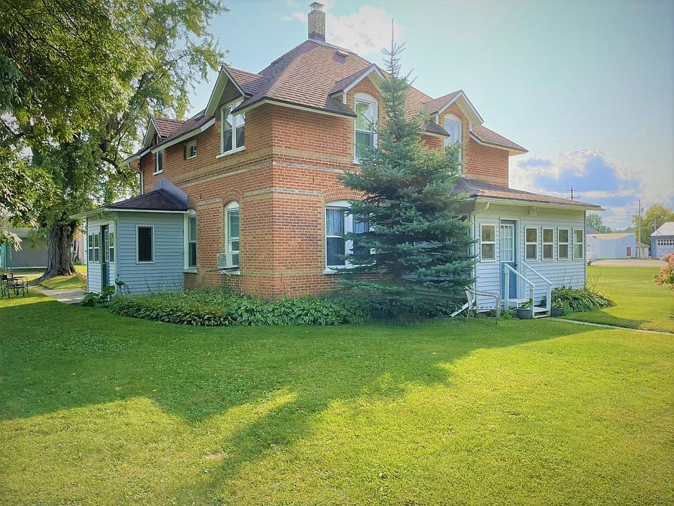 RARE historic 1903 Danish brick 3/2 home w/stained glass. 2-story barn/2-car garage & above-ground root cellar built by the first barber in Suring. UPDATED kitchen/bath w/jacuzzi. 2 enclosed porches.Wood/pellet stove.Easy care flooring. UPPER level: bonus room+laundry room/kitchen?, 2 large BR +1BA, large landing w/ private entrance. Replace one door/appliances for a 2-family dwelling or AirBnB + space above garage. Parking for 5. On ATV/snowmobile trail.