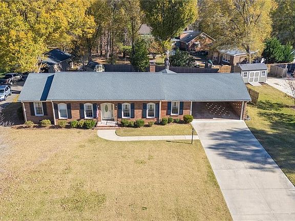 Beautiful, classic 3 bed/2 bath ranch in fabulous Burlington location! Incredible curb appeal and large, fenced backyard make this home stand out. 12' long foyer opens to living room on the right, which houses a doorway into the dining room with chandelier and chair rail crown molding. Through the door at the back of the dining room you'll find the kitchen, offering attached breakfast area with triple window cove and huge pantry cabinet providing plenty of room for storage. Off left of the kitchen is an expansive, cozy den boasting floor-to-ceiling brick-surround fireplace and an entire wall of built-ins! Spacious primary with hardwood flooring sits on back left corner of the home with en-suite bath featuring two separate vanities and a large walk-in closet. BRs 2 and 3 share an adorable Jack 'n Jill bath. Exterior features include covered back porch, 22'x16' partially fenced patio, adorable storage building, & attached 2-car carport with huge storage closet. WELCOME HOME!!