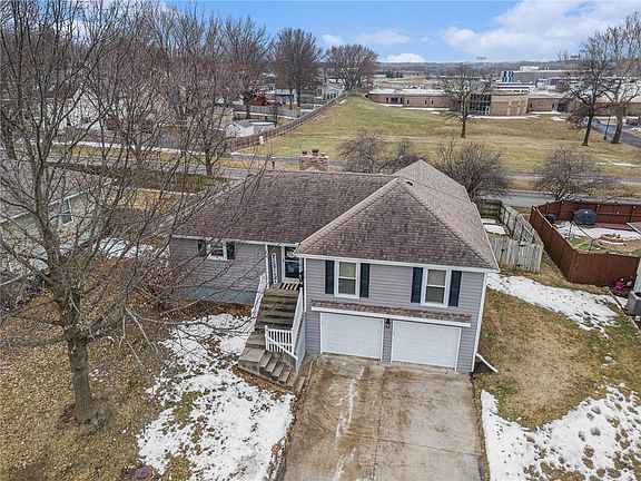 This inviting Raised Ranch offers the perfect blend of comfort and potential, with 1,400 square feet of finished living space and an additional 900 square feet of unfinished area to make your own. Located directly across from the Kearney School District Campus, this home is ideal for families seeking convenience and charm.The spacious living room features soaring vaulted ceilings and a cozy gas fireplace, creating a welcoming atmosphere that flows seamlessly into the formal dining room. The traditional galley kitchen offers plenty of cabinet and counter space, complete with original hardwood floors that add character throughout. On the main level, the primary suite is a true retreat, featuring vaulted ceilings, a ceiling fan, and an ensuite bath with a vanity, tub/shower combo, and tile flooring. Two additional bedrooms and a second full bath provide ample space for family or guests. The main floor also includes a versatile sitting room, perfect for a den, craft room, or playroom. The unfinished lower level provides extra storage and a laundry room, with plenty of potential for future expansion. Outside, the large, privacy-fenced backyard offers a great space for kids or pets to play, making it an ideal spot for outdoor enjoyment. Don’t miss out on this wonderful opportunity to make this home yours!