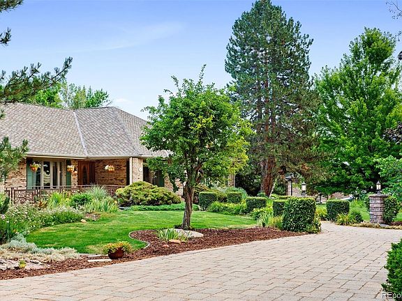 Rarely offered in this very special neighborhood is a classically renovated ranch style home situated on a picturesque 1.08 acre site. This charming home has a park like yard with soaring mature trees, expansive rolling lawn, incredibly beautiful perennial gardens, raised garden beds and storage shed. Architectural details include vaulted ceilings, crown molding and a spacious floor plan with generous room sizes and large windows and skylights which fill the home with natural light. Finishes include beamed vaulted ceilings, hardwood oak flooring and fresh interior paint. The Kitchen features stainless steel appliances, slab granite counters with peninsula, Alder wood cabinetry and large breakfast nook with pass through fireplace. Appliances include a Sub-zero refrigerator, four burner gas cooktop, double ovens, microwave, trash compactor and newer dishwasher. A stunning Great Room with innovative stone fireplace design and vaulted and beamed 13' ceilings frame a large picture window which provides a sweeping view of the back yard. Spacious living and dining spaces offer great entertaining options for large gatherings. The main level includes three bedrooms, a study and laundry room. The Primary Suite features a private deck and five piece bath with large walk-in closet. The lower level has been perfectly laid out with an oversized Family Room with bar and gaming area, two bedrooms and huge storage room. Recent updates include a composition shingle roof and a stunning stone back patio with built-in gas fireplace. Front Range Road is a wonderful neighborhood with tree lined streets, large pastoral lots and a lifestyle that offers the charm of days gone by. Top rated Littleton Schools, Historic Downtown Littleton and the Highline Trail are all within reach. Neighborhood activities include a 4th of July parade, Oktoberfest and progressive holiday home event. $8500 Seller Paid Carpet Allowance.