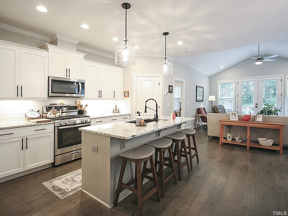 Verbally under contract; awaiting relocation company's signatures. You've found it! In like-new condition: main-floor owner's suite, open-concept floorplan, vaulted ceilings, gourmet kitchen with gas range and white cabinets, large kitchen island with room for seating, cozy gas-log fireplace, over 2,000sf with four generously sized bedrooms (one would make an excellent bonus/rec room/office), 2-car garage, quiet cul-de-sac street, fenced backyard and large deck, backs to wooded buffer.