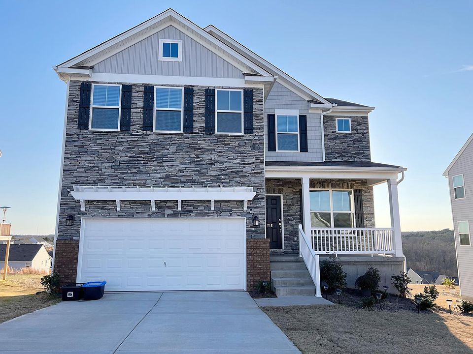 Welcome to this 5/6 bedroom, 3.5 bathrooms, home situated on a large lot in the lovely town of Easley. You are greeted with a rocking chair front porch. As you walk into the home, to your right, there is a den or multipurpose room, that could serve as the 6th bedroom. Make your way to the much sought after open floor plan concept. The gourmet chef's kitchen has an over abundance of stunning white kitchen cabinets. The kitchen also features granite countertops, tile backsplash, large pantry, stainless steel appliances, island with seating, all overlooking the family room and stunning dining room. Off the kitchen is a large deck overlooking backyard. To round out main level, there is have a large half bath. Make your way upstairs with large open loft. The master bedroom is oversized with seating area. Master en suite offers, double sink vanity, garden tub, walk-in shower, and large walk in closet. There are three additional bedrooms upstairs, one full bath, with double sink vanity and a walk-in laundry room. The house does not stop here. Home offers full basement with large living area or rec room, one bedroom with one full bath. The basement has a private unfinished storage. The basement has walk out to large patio. Small dogs accepted, breed restrictions apply. No CATS.