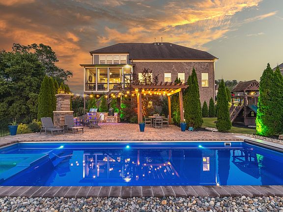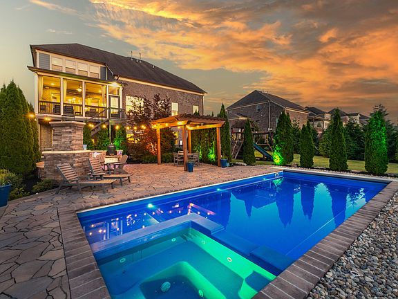 Nestled in a picturesque and private setting, 715 Green Hill Blvd presents an exquisite blend of sophistication and comfort. As you approach the home, you’re greeted by beautifully landscaped grounds and stunning double entry mahogany doors. Step inside and bask in spacious living areas. The heart of the home is the chef's kitchen equipped with stainless steel appliances and ample counter space. The open layout seamlessly flows into an outdoor living space perfect for entertaining. Lounge by the outdoor fireplace, whip up delicious meals in the outdoor kitchen, or take a refreshing dip in the heated salt-water pool, complete with an automatic cover and built-in hot tub. For those seeking a moment of tranquility, the screened-in porch offers a cozy retreat with infrared heating, perfect for leisurely evenings or morning coffee. As you retire indoors, discover six wonderful bedrooms, including a serene primary bedroom suite on the first floor, featuring a luxurious ensuite bath with a separate tub and shower. Ascend to the second floor, and its four additional bedrooms, each with access to beautifully tiled baths. Here, entertainment options abound with a home theater and an extra-large recreation room, perfect for family gatherings or movie nights. The basement further features a large bedroom boasting a walk-in closet and large wet bar, making it an ideal guest suite. A generous family room and plenty of storage space give you room to breathe, while access to the stunning pool outdoors keeps you connected to the beauty of nature. Further, a dedicated wine cellar promises to house your collection in style. With custom closets, high-end light fixtures, and outdoor landscape lighting enhancing the home's elegance, every corner of this home reflects a commitment to quality and design. The three-car garage, with its custom flooring, provides functionality and flair, including a whole-house 20KW generator for peace-of-mind, and a convenient tankless hot water system.
