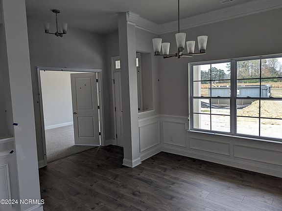 Welcome Waverly Place- the premiere community in Richlands , NC located just 15 minutes from Jacksonville and 40 from the beach. The 2100 plan features a very open and inviting concept living space that is ideal for entertainment and enjoyment. Inside you'll find many standard upgrades at no extra cost such as wainscotting in the dinning room, crown molding in the master suite as well as the dinning area. Revwood is also included throughout the main areas along with kitchen tile backsplash and granite counter tops also included. This particular home will have a walk in shower and separate soaking tub in the master bathroom. Estimated completion date is March 2024. $1,000 builder deposit, Photos are representative of the same home in another community.