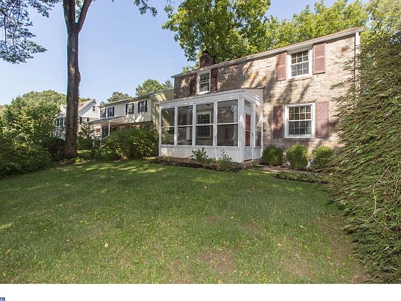 This delightful stone colonial home, with 3 bedrooms, 1 ~ baths and over 1500 square feet of living space, is located on a quiet street in the wonderful Pine Ridge Subdivision and in the award-winning Wallingford-Swarthmore School District. Mature landscaping and over a third of an acre of land give this property a feeling of seclusion and privacy. A lovely glassed-in porch welcomes you to this home, then enter into the spacious living room, with an attractive wood-burning fireplace which serves as this room's focal point. The fireplace, with brick surround, is flanked by two large windows, and charming built-in shelving. Hardwood floors give this space a feeling of warmth, and extend throughout the entire home. To the right of the living room, through an arched doorway, is a gracious dining with lots of natural light. The dining room flows into the kitchen, complete with dishwasher, built-in microwave, gas stove, pantry and a sunny window over the sink which provides fabulous views of the lush and tranquil back yard. The yard is accessible through a back door. A powder room and one-car attached garage (separate entrance) complete the first level. Up the hardwood staircase is the second-floor foyer and linen closet which leads to three well-sized bedrooms, all with spacious closets and ample windows. There is also a large deck off the upstairs foyer -- perfect for enjoying the bucolic setting. A full, renovated bath with ceramic tile, a Kohler pedestal sink, and tub/shower combination complete this upper level. There is a full, unfinished basement, in immaculate condition, where the laundry is housed and which allows plenty of room for extra storage. This house has central air-conditioning, and is just minutes from the bustling town center of Media, and convenient to trains and major highways. Come take a look!