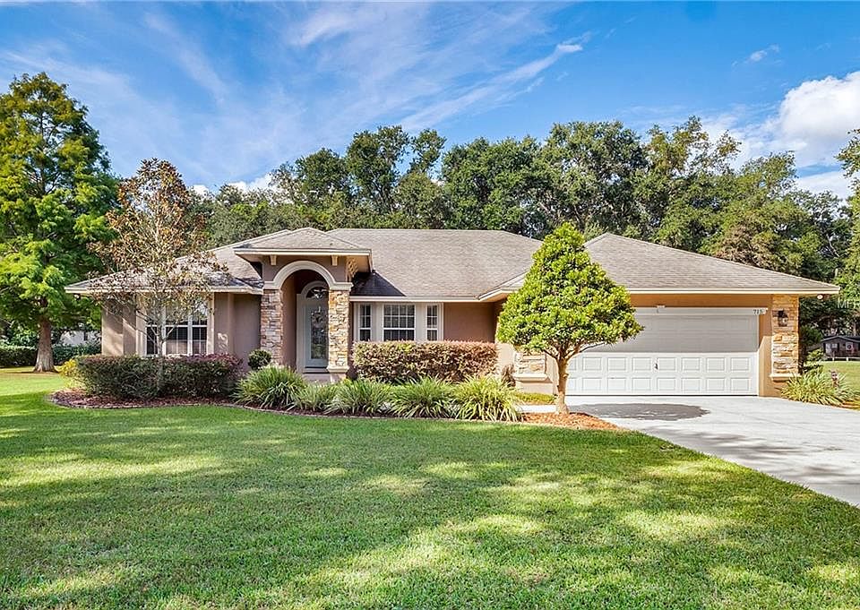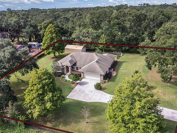 Gorgeous custom home on a private 1 acre lot in a quiet country setting with no HOA. Welcome to 715 Honeyfarm Lane, a 3 bedroom 2 bath residence with 1,980 sqft of living area with a fully fenced yard and an open floor plan, ideal for entertaining friends and family. The great room features beautiful wood floors, a stacked stone gas fireplace, extensive crown molding and French doors leading to the screened lanai. Kitchen is complete with stainless steel appliances, an island with breakfast bar, closet pantry and dining space. Master suite boasts a huge 10'x16' walk-in closet with custom shelving, a second walk-in closet and a luxurious master bath with tiled walk-in shower with dual shower heads. Second and third bedrooms are oversized and conveniently located next to the second bathroom which features a jetted soaking tub. Enjoy morning coffee on the rear screened lanai or relax the evening away sitting by the outdoor firepit. In addition to the 2 car side entry garage is a 20'x26' backyard shed which offers electricity and a concrete slab floor, perfect for storing a boat, ATVs or lawn equipment. Completely fenced yard with two gated entrances. Other notable features include; an inside laundry room, extensive crown molding & fans throughout the entire home, newer Trane air conditioner, security system, water filtration system, irrigation system and mature landscaping. Within 5 minutes of Berkley Charter School and I-4, centrally located between Tampa and Orlando.