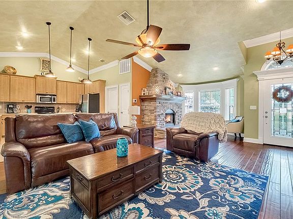 - Interior Features: Ceiling Fans(s), High Ceiling(s), Master Bedroom Downstairs, Split Bedroom, Vaulted Ceiling(s), Crown Molding, Walk-In Closet(s), Open Floorplan, Eating Space In Kitchen, Kitchen/Family Room Combo, Built in Features
