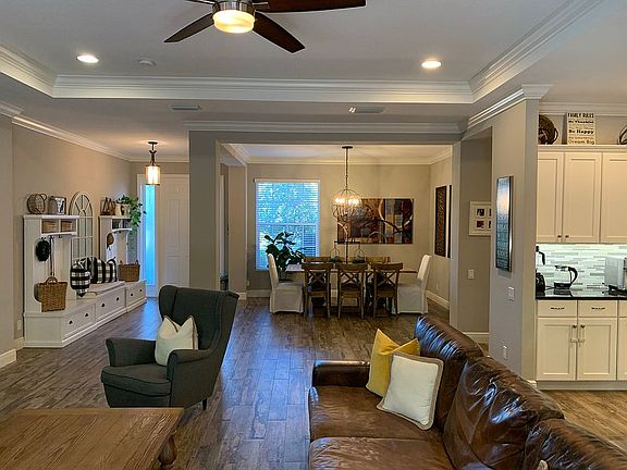 - Interior Features: Ceiling Fans(s), Eating Space In Kitchen, Split Bedroom, Stone Counters, Walk-In Closet(s), Crown Molding, Solid Wood Cabinets, Kitchen/Family Room Combo, Solid Surface Counters, Tray Ceiling(s)