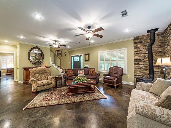 Homesteader's dream! Custom built energy efficient french country style on approx 10 private acres with stained concrete floors, 9' ceilings, 3 bedrooms with 2 master suites, screened in back porch, custom metal railing. Massive shop with tons of storage and heated and cooled office, storm cellar. Garden, orchard, backup well system. Lots of extras. Close to walk in fly fishing access at Cow Shoals or the boat ramp at Winkley Shoals. Shown by appointment only.