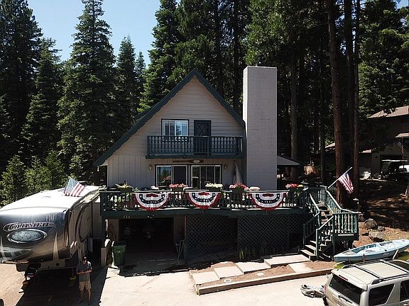 Charming Lake View 3 story home Located within the Lake Almanor Country Club. Upstairs has 2 bedrooms, one with King bed and one with two twins in a trundle setup and a bathroom. Another large bedroom downstairs with king bed and downstairs bathroom. Wood insert fireplace make the living room cozy during the winter months to supplement forced air propane central heat furnace. 50 year commercial metal roof. Large level lot with plenty of parking for boats and toys! One car deep garage with extra basement for storage and covered carport for boat or golf cart. 10X12 storage shed in back. Garage wired for generator (included). Honda Snowblower also comes with home for winter plowing. Remotely accessed security cameras on sight. Large deck to enjoy the lake view in front of home and smaller deck off the back of home. Furniture can be negotiated in sale to make this turn key and ready for use! Many amenities in country club including 2 boat ramps and recreational areas with beach, golf course and restaurant, tennis and pickleball courts. Great fishing and boating minutes away. Home currently being used as a very successful short term rental, but was also lived in full time. Appointments for showing will need to be scheduled according to vacancy of guests.