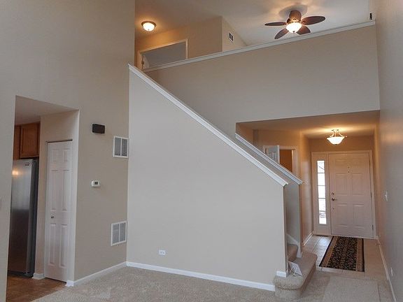 Awesome 2 bedroom, 2.1 bath townhouse with loft! Welcome guests into your inviting foyer with large half bath and hall closet. Relax in your living room with soaring 2 story windows. Prepare meals in the large eat-in kitchen with center island, brand new SS refrigerator, brand new SS 5 burner gas range, buffet counter and sliding glass doors that opens to your patio for BBQ's. The spacious master bedroom suite has walk-in closet, private master bath w/separate shower and large soaking tub. Nice size 2nd bedroom with walk-in closet and 2nd full bath just steps away. Customize your loft for private office, kids space or person cave! 2nd Flr laundry w/brand new W/D! Brand new carpet, lighting, blinds and professionally painted. Walking distance to charter school, EZ access to I-90 and Randall Rd shopping. Close to all the amenities in a fun and exciting community! Quick Close!
