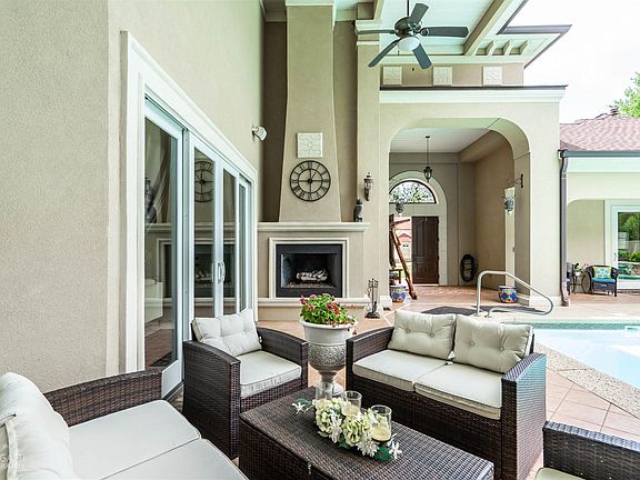Spacious stucco home with a great floorplan. Beautiful interior finishes & well maintained. Luxury master bath with shower & whirlpool tub. Gourmet kitchen with granite, Wolfe cooktop, 2 refrig/freezers, double ovens vegetable sink & butler's pantry. Walk in laundry with cabinets & sink. 5th bedroom can be poolhouse/mother-in-law suite with full bath located within interior of outside courtyard overlooking saltwater pool with fountain & outdoor fireplace. 3 balconies -1 overlooking pool, 1 overlooking backyard & 1 on front of home.