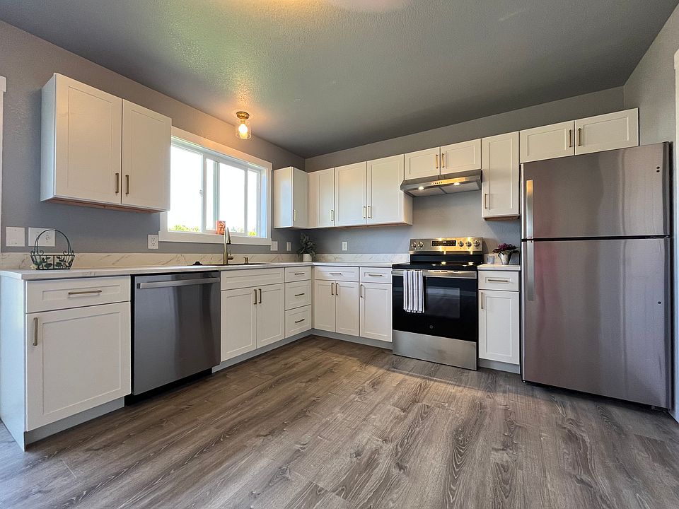Newly remodeled and conveniently located! This 2 bedroom apartment is on quiet cal-de-sac with large shared yard. Upstairs apartment, has it's own private back deck, a storage unit, off-street parking, and in-unit washer / dryer included! Easy access to north Kalispell, downtown Kalispell, and the west valley. 6 mo lease. Small pet considered with additional deposit and fees. Tenant pays electricity only. Owner pays water/sewer and garbage. Small pet may be considered, $500 refundable pet deposit plus $50/mo.
