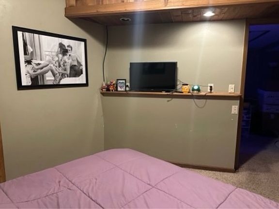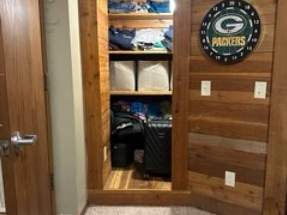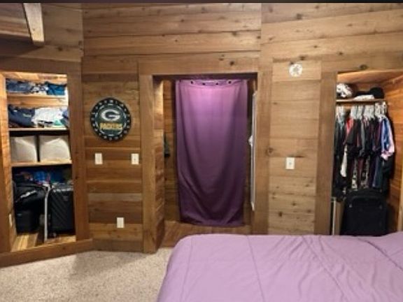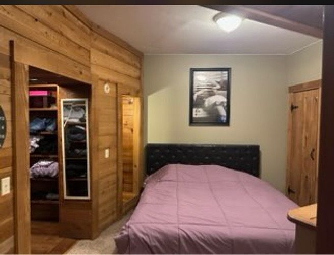 -11x12 Bedroom has a wall full of custom built closet/shelving.