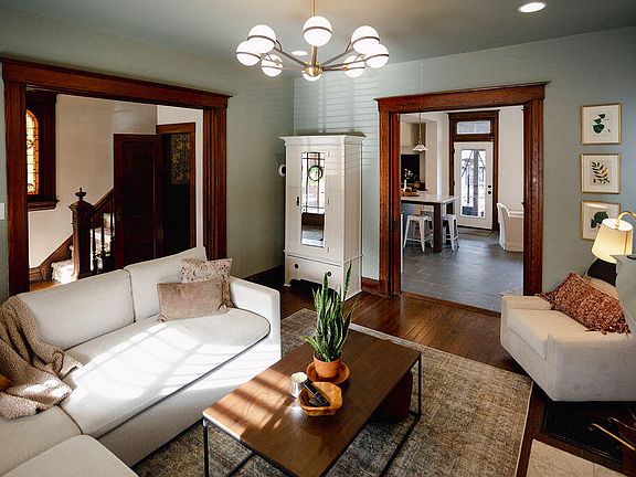 Modern Style that highlights historic charm. All baths added or updated with high end finishings within the past two years. Hardwood refinished, entire house painted, new appliances, new kitchen cabinets and floors, new exterior doors, new garage windows, upgraded light fixtures, the list goes on. Original features like unpainted trim, hardwood floors, gorgeous stained glass, and multiple tiled fireplaces. Covered deck to relax and entertain outdoors. Artificial turf minimizes yard maintenance. Large hard to find 3 car garage. Move in ready!