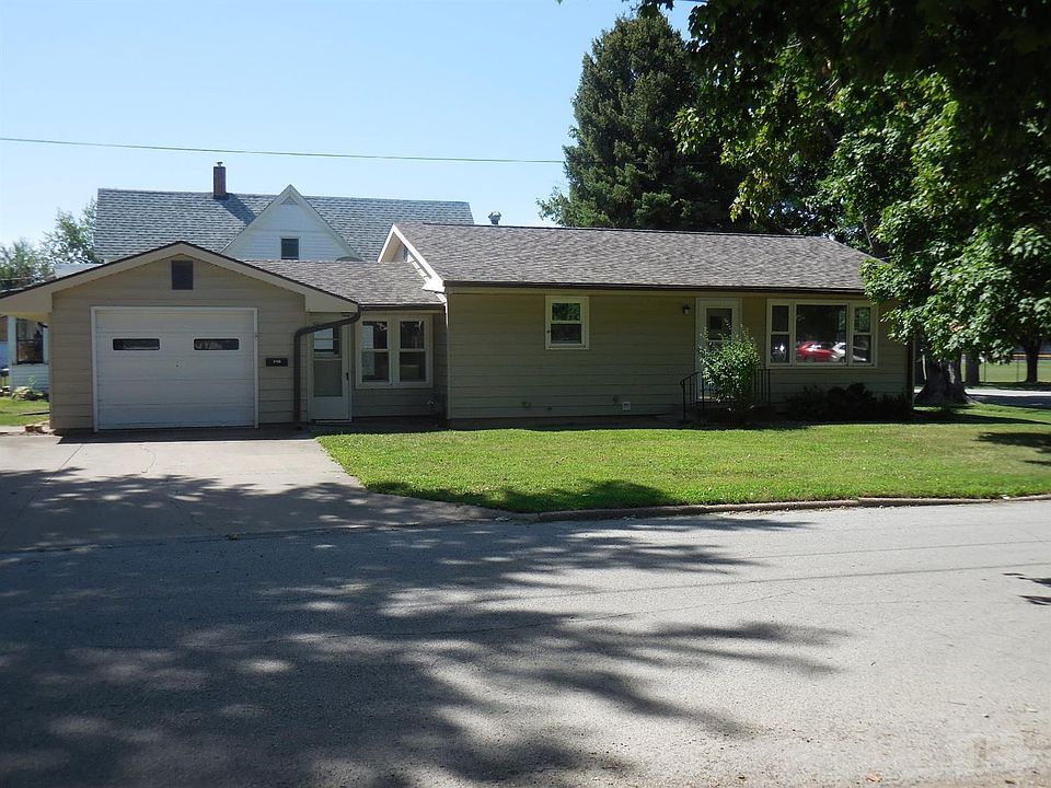Nice 2 bedroom home with Laminate flooring throughout. Situated on a corner lot close to the grade school and pool for the convenience of the new owners. This cute home has updated electrical, plumbing along with new central air/furnace and water heater. Freshly painted. Very neat home and very convenient. Won't be on the market long. Move in ready. Start packing.