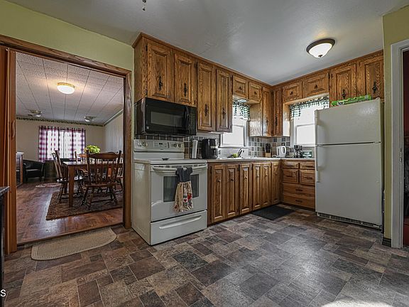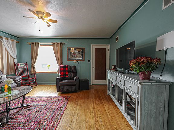 Looking for a little shop space in town? You've found it! The home is currently set up as a single family but can be converted back into a duplex. The main floor has a kitchen, dining room, two bedrooms, full bathroom, and a large living room. There is hardwood flooring in the living room and bedrooms. Downstairs hosts the laundry room, as well as a living room (includes washer and gas dryer), kitchen, bedroom with electric wall heater, and 3/4 bathroom. Upgrades to the home include new water heater in May 2022, newer vinyl windows, April Air high efficiency furnace, and the plumbing was resleeved by HA Thompson and Sons. The double car garage measures 20 x 20 and has an additional 22 x 18 shop/storage room attached for a total of 792 square feet.
