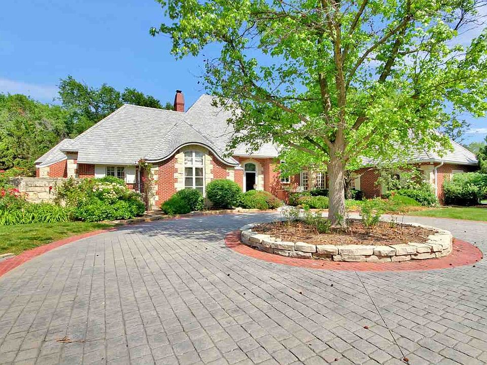 LOCATION, LOCATION, LOCATION! Nestled on a 0.79 acre wooded cul-de-sac lot in the heart of Woodland Lakes Estates in Lakepoint, this one owner custom built brick charmer is well appointed with exquisite details and luxurious finishes throughout. The 1-1/2 story floor plan, designed by the esteemed Dennie Van Buskirk, flows seamlessly for entertaining and every day living. Enjoy stately curb appeal with a European flare, a cobblestone circular driveway, front courtyard, a carved mahogany front door, a gracious foyer with marble flooring and an elegant curved staircase, custom crystal chandeliers with 24 karat gold accents, substantial crown moldings, gorgeous windows overlooking the property, high ceilings, spacious rooms, formal dining, an eat-in hearth kitchen, generous storage, two fireplaces, security system, sprinkler system, lush landscaping and a densely wooded, private backyard. The heart of this home is a dramatic great room showcasing 14' ceilings, a back wall with floor to ceiling windows and french doors leading to an expansive patio, a mahogany and marble fireplace, and a wet bar. The adjacent formal dining room is large enough to accommodate a large table for those special occasions. The open kitchen is sure to please any cook with hardwood flooring, a center island with Italian tiles, carved cherry wood cabinetry, pantry, under cabinet lighting, desk area, breakfast nook surrounded by windows and a fireplace. Retreat to an elegant master suite offering French doors to the patio, a sitting area, large walk-in closet, adjoining office with a bathroom and walk-in closet, rose quartz soaker tub, dual vanities, separate shower, private toilet, bidet, and a rose quartz chandelier. An oversized laundry room, elegant powder room, and ensuite guest bedroom complete the main level. Upstairs, you'll find two large bedrooms connected by a jack-n-jill bath. There's opportunity to custom finish the basement to your liking. Extend your living space outdoors on an incredible patio spanning the back of the home and overlooking the private, wooded backyard. Conveniently located in one of the most desirable NE Wichita neighborhoods and quality built with only the finest finishes, this one-of-a-kind home is the perfect place to make your own. Call today to schedule your private showing.