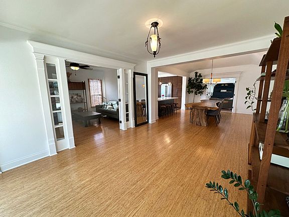 Single level home in the Historic Preservation Neighborhood north of Downtown Fullerton. - Walk into a spacious entry with adjoining sitting room/den with large picture windows offering lots of light and gorgeous views. - Bamboo wood flooring throughout the main area of home with tile flooring in the secondary family room. - Open kitchen & dining area with gas range/oven, ample counterspace & stainless steel appliances. Kitchen also features quartz countertops and pull-out pantry drawers. - Two bedrooms and full bath off hallway of main area of home. - Step down into a secondary living room area with Saltillo tile flooring. - Third bedroom located in the rear of the home with ensuite bath and walk-in closet. - Central heating and air in main area of home with mini-split systems for rear bedroom & family room. - Drought tolerant landscaping in front and rear of home. Back yard features wood pergola patio and outdoor kitchen with built-in gas BBQ, two gas burners, small fridge, and prep sink area. - Detached, finished shed that is about 9x8 feet with wood laminate flooring and wall AC. - Two car garage with alley access. - Electricity supported with solar panels.
