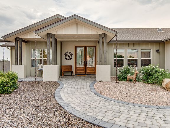 This home has everything! Custom Home built in 2018 on a 1 acre lot, paved road to property in a fantastic area. This 3 bedroom 2 bath contemporary home with farm house style has beautiful colored polished concrete floors, fireplace in great room, leather finished granite counters in kitchen, large walk in pantry, large master bedroom and bath with soaking tub and walk in closets in all bedrooms. Gorgeous backyard with large covered patio, built in BBQ, grass, fire pit, putting green, play area for the kids, large storage shed, RV parking with hookups, privacy area in backyard out of master bedroom for the perfect spa area. Bring all your animals and toys! No HOA! This home has too many upgrades to list, must come see to enjoy this meticulously maintained and custom built home!
