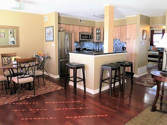 Fall in love with this stunning two bedroom, two bath condo facing the Little Arkansas River in the heart of the city. Located just north of Wichita Art Museum, you are close to parks, walking paths, Botanica, Cowtown, Indian Center, golfing, tennis, center city and so much more. This main floor, front unit has been completely renovated â kitchen has been opened to living and dining rooms and has new appliances, tile floor, and maple cabinets with quartz countertops. The master bath has been remodeled with tile shower and new condo flooring is floating engineered hardwood. Also, seller raised the 2nd bathroom ceiling and relocated the HVAC from there to the basement storage unit, replaced the electric panel, added full sized washer dryer in the 2nd closet of the guest bedroom, and upgraded the front storm door and sidelights. Tastefully decorated with quality workmanship and materials. There is a storage bin available in the basement and an assigned carport. Move in and enjoy low maintenance living with a river view in Riverside.