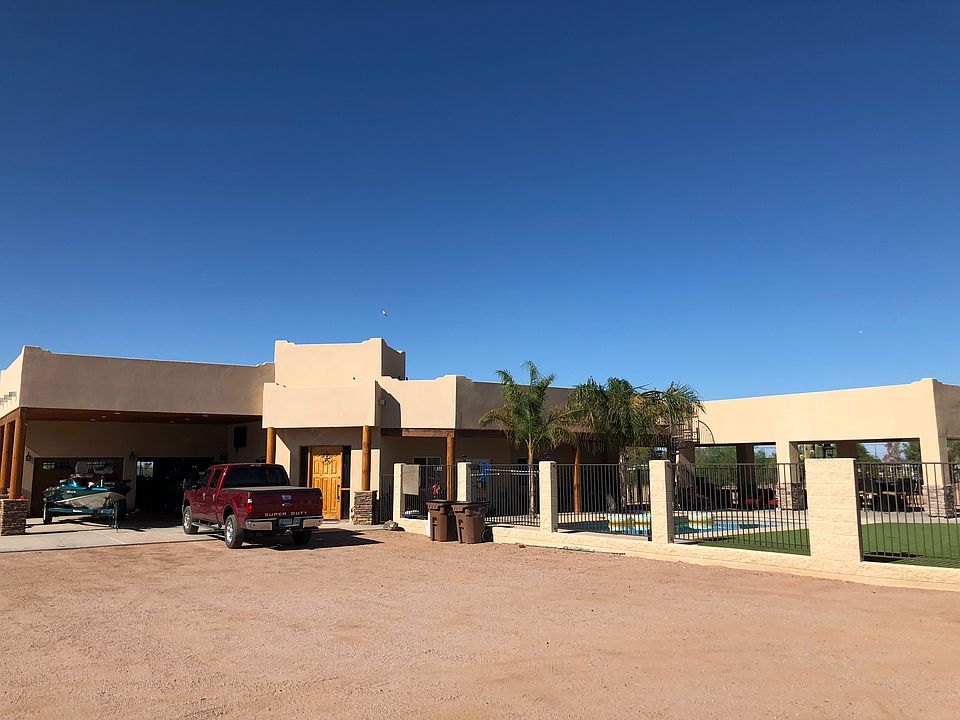 Complete info: 3 bed 3 bath home and attached guest quarters. Oversized 2 car garage, huge carport, 2 extended patios with a pool and artificial grass. Everything completely redone 2015-2018. 400 amp service with buried lines. All new paint, carpet and cool deck on all patio/pool concrete! No guarantees if property can be split. Great mountain views and room to roam. Home is on Arizona Water.