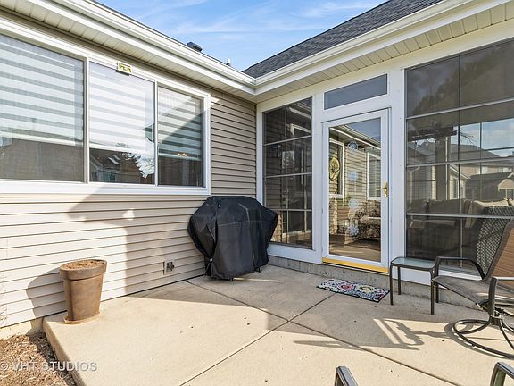 Come home and relax, lawn maintenance and snow removal are taken care of! Located on a quiet interior street, this absolute move-in condition ranch home boasts tasteful neutral decor and timeless architectural appeal. Stacked stone accent on the front elevation and an architectural shingle roof provide a quality feel. Wide plank hardwood flooring throughout the great room, kitchen & dining room areas provide a warm and comfortable feel. The kitchen overlooks the living area with a view of the fireplace and wall where the television likely will be mounted. The great room concept living area boasts a cathedral ceiling and a custom fireplace. A separate dining room that can be utilized as a den/office is immediate to the great room. Note the expansive basement featuring a finished area suitable for a recreation room, bedroom, studio, as well as a generously sized mechanical room/storage area. Enjoy the three season room as well as the patio (the gas grill is included). Main floor laundry. This home has been meticulously maintained and updated. Homeowner's association includes lawn care, snow removal and scavenger.