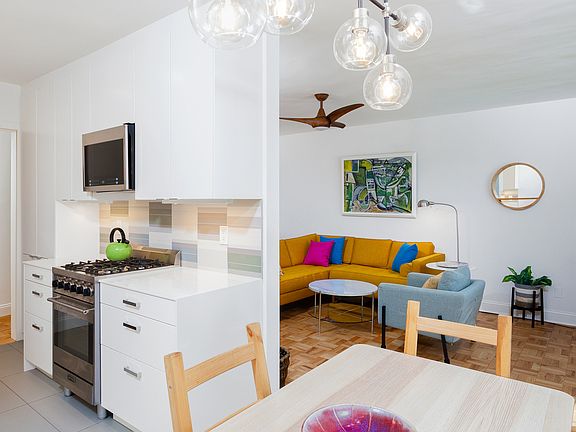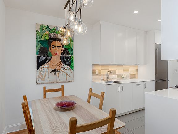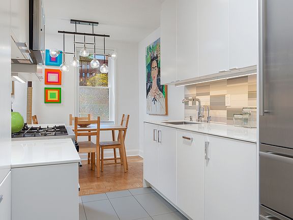 This stunning, spacious, sun-filled 2-bedroom 1.25 bathroom apartment exudes elegance, style and impeccable design. Brilliantly reimagined by the acclaimed architectural team of DAS Studios, this corner, second floor home enjoyed a near total gut rehab in 2019. The newly reconfigured open layout offers a state-of-the art gourmet kitchen that flows into the new sun-drenched dining room. Only the finest appliances and finishes appoint the gorgeous, modern kitchen, starting with its porcelain counters, complete with waterfall finishes, Italian tile backsplash, filtered water dispenser and floor to ceiling pantry. Enjoy the built-in Liebherr refrigerator, Bosch dishwasher, and Smeg gas range - all stainless steel and warrantied for another 3 years. The dining room opens into the bright and expansive living room with its original Art Deco inspired detailing and office nook. Enjoy the tree-lined views from every room through new top of the line 400 Series Anderson Windows. A gracious hallway sets apart the living area from the two massive bedrooms, both comfortably fitting a king-sized bed, couch, desk and dressers. A built-in vanity with custom porcelain countertop and sink has been added to the corner bedroom- providing the convenience and privacy of a partial ensuite bath. The other bedroom enjoys a huge walk-in closet. The remodeled full bathroom boasts a penny round marble floor, floor to ceiling subway tiles, deep soaking tub, multiple shower heads, and recessed medicine and storage cabinets. Among this home's many unique features is its newly added storage room off the foyer with custom built-in wood shelves, allowing easy access to all your favorite cooking wares, sporting equipment, seasonal treasures and much more. Refinished hardwood parquet floors add to the home's warmth and sophistication. Located in a classic post-war Art Deco inspired elevator building, this home is a quick walk to the Q, B (express) and F trains, restaurants, cafes, nightlife, shops, parks/tennis courts, gyms and all that Kensington/Ditmas Park have to offer. Enjoy the vibrant community garden on the block and the all-greenway bike ride to Prospect Park, Brighton Beach and Coney Island. This financially sound and well-maintained co-op features two elevators, a live-in super, full-time porter, modern card operated laundry facilities, sweeping front lawn (newly fenced), mature trees, courtyard, private back yard with picnic tables, $100/month garage parking (wait list), bike room, storage (wait list), mail/package room, remodeled lobby and multiple entrances (including ramp/stairless entry). Maintenance fee includes hot water, heat, property taxes and common building expenses. Sublets permitted with board approval for up to 2 years after 2 years of residency. Alas, dogs not permitted. Can be purchased furnished.