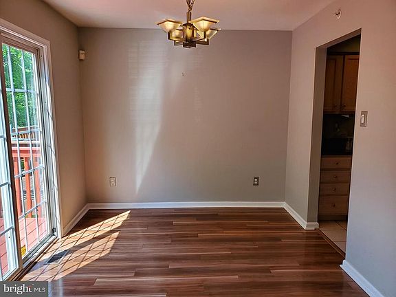 Great townhome in Bradford Green! Step through the front door and notice the gleaming hardwoods throughout most of the main floor. The light and airy living room opens up into the dining area, making this the perfect spot to entertain. The dining room sits just off the the kitchen is is complete with hardwood flooring and sliding glass doors that lead to the spacious back deck backing to a wooded area. The light from the sliding doors pours through to the kitchen and provides a great woodland view. Upstairs is home to two nicely sized bedrooms, both with plush carpeting and ceiling fans. Downstairs you'll find the finished basement complete with recessed lighting, tile floor, and an area for storage. This home is conveniently located with close proximity to shopping, dining and public transportation!