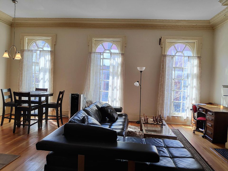 **Available from March 1st - Virtual tours only until February 15th** Lovingly renovated apartment located in the heart of Baltimore, on the 2nd floor of a private 130 year old building. -Private rooftop deck -Tall ceilings -Soaking bathtub -Huge windows Easy parking behind the property, so ditch your car and walk everywhere in Historic Mt. Vernon. A few gorgeous blocks to Hopkins Shuttle, taking you to Johns Hopkins University or Hospital, the Peabody Institute, Maryland Institute College of Art (MICA), PENN Station (Amtrak and Marc). Easy commute to Washington DC, Baltimore County, and downtown Baltimore. Highly rated and loved! *Mt Vernon Flats* is the highest rated apartment rental company in Midtown Baltimore. We are a family business that owns and operates historic apartment buildings with small, private communities of great neighbors. We're hands-on and responsive, committed to renting modern, refurbished apartments with preserved historical details. We specialize in boutique furnished apartments as well as long term unfurnished annual rentals. Email us with any questions you may have and to schedule a tour. $1,300 for unfurnished annual lease $1,500 for furnished annual lease $1,850 for month-to-month furnished *Discounts for 18 month lease Utilities, including water, heat, electricity, and high-speed internet paid by tenant. Off Street parking spot is available to lease for an additional $160 a month; street parking is $20 with Baltimore City per year. Furniture as seen in photographs also for sale. Apartment can be turned over empty.
