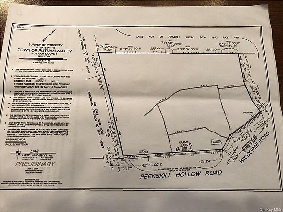 Large corner property - 7.5 acres, mature trees, garden, roiling topography with stone walls. Small barn on property fronting Peekskill Hollow Road.
